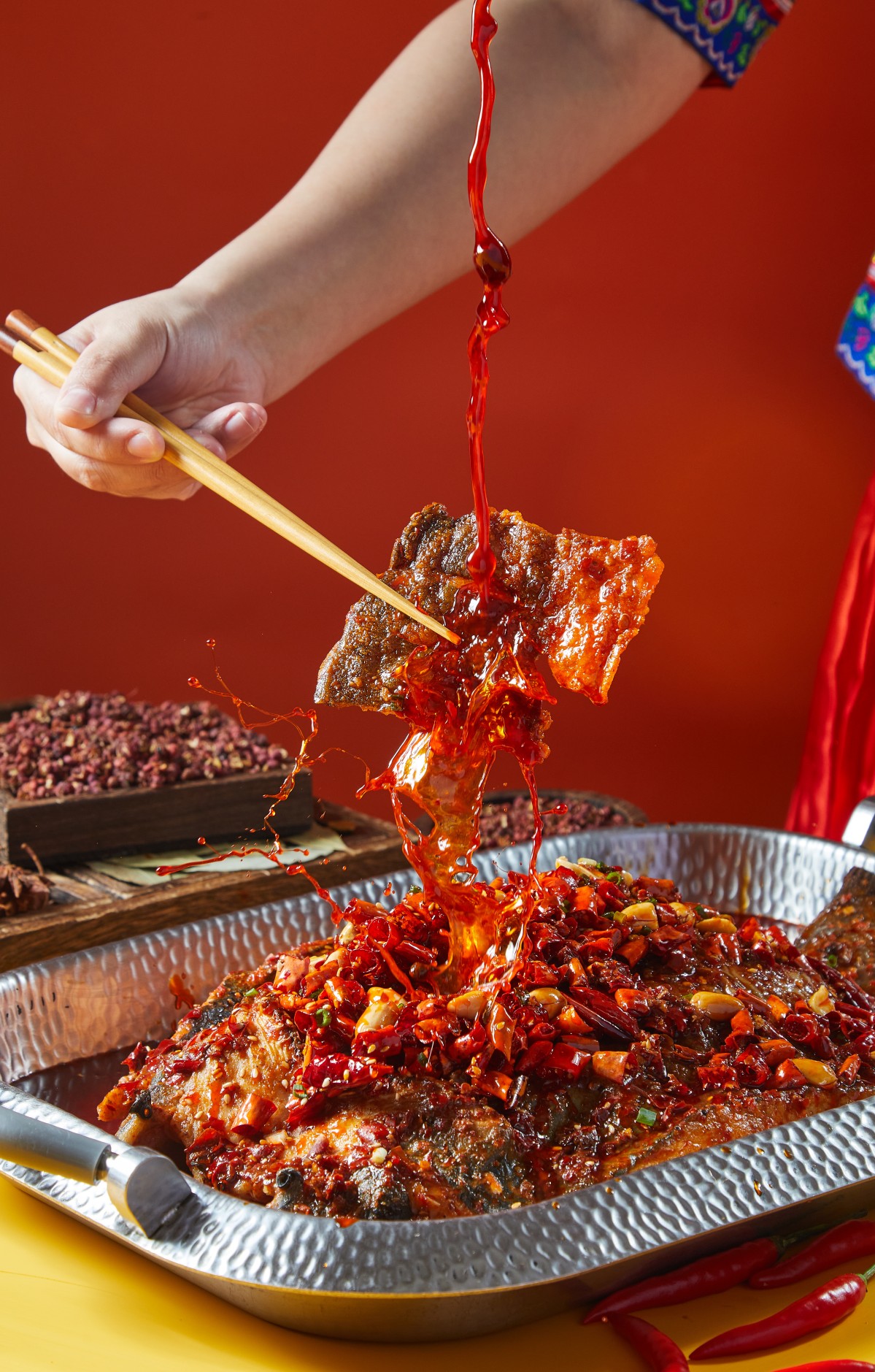 汉源花椒搭配多种辣椒 小郡肝切块、腌制入味 涮烫3分钟,成就爽脆美味